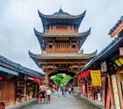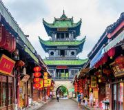 阆中古城位于四川南充市,嘉陵江畔。古城有多个入口,主要为状元坊,城内街道布局基本呈东西或南北走向,大多数十字路口都有清晰的导览图指示牌,不会迷路。阆中古城内有观光车在五大核心景点(汉桓侯祠、贡院、华光楼、中天楼、风水馆)和南门城墙、游客中心和北门之间运行。不想坐观光车的话,也可以乘坐马车。不过,如果不是赶时间的话,建议步行,且步行可以更贴近阆中古城,感受点点滴滴的细节。
