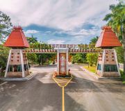 日月湾是国家AAA级旅游景区。日月湾海门浏览区位于素有“海南黄金海岸”之称的日月湾海边,距离海口市168公里,三亚市87公里,从东线高速公路日月湾 入口进入景区只有500米。是一处具有特色海洋景观(海门奇石)和海湾风情文化相结合的旅游景点。
