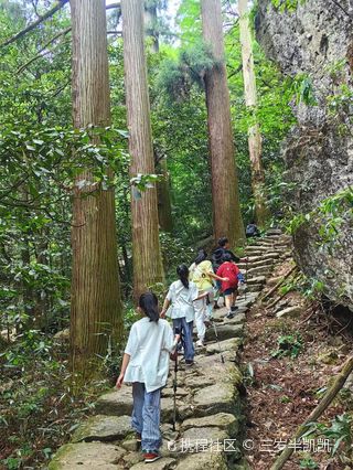 西天目山以“大树华盖”闻名于世,拥有世界罕见的大柳杉群落,而这片柳杉群主要就生长在大树王景区内。这里的柳杉群如同顶天立地的绿色屏风,又像撑起一顶顶绿色的华盖,是个凉爽的夏日避暑胜地。柳杉群中,树龄在五百年以上的有500余株,集中分布在五里亭至开山老殿一带。其中,有名的自然是被乾隆亲封命名的“大树王”,它树龄2千余年,树径达2米以上。可惜,由于人为的破坏和环境的影响,“大树王”已于二十世纪30年代死亡,不过大树王虽已死70余年仍傲立不倒,枯干上还寄生出一棵翠绿的新枝。而在“大树王”右上方的141号柳杉,已被大家公认为天目山的新大树王。游览大树王景区也很方便,可以坐景区交通车到山上的龙凤尖停车场,然后顺着木栈道和山路游览,一路往下可经过四面峰、倒挂莲花、四世同堂、大树王、狮子口、开山老殿、伏虎瀑等景点。西天目山峰顶——“仙人顶”也在大树王景区内,峰顶海拔1506米,山顶有一石柱,名天柱峰,柱上原有清代石刻"天下奇观",因1955年建造气象站时被炸,现仅存“可观”。天气好时,在仙人顶可东瞰钱塘江,西眺黄山。