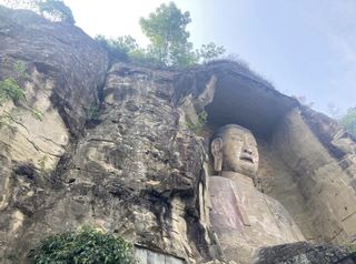 半月山大佛,因坐落于山形似下弦月的半月山而得名。它位于资阳市雁江区碑记镇,是四川第二大坐佛,据说在世界上排第22位。半月山大佛属摩崖造像,即在山崖石壁上雕造的佛像。其尤弥勒佛倚坐像,属净土宗造像。大佛端坐于长方形石龛中,坐南朝北,身高22.24米,胸宽11.2米,结构雄浑古朴,气魄宏大,一望而令人产生敬畏之心。而佛像面部丰润,双耳垂肩,表情安详恬静,目光平和下视,好像在关切地注视着礼拜者,又使人觉得可亲可敬。