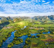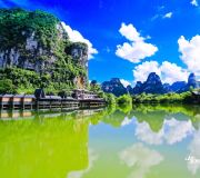 德天跨国瀑布景区位于中越边境广西壮族自治区崇左市,横跨中国和越南两个国家,宽度达200多米,是亚洲首屈一指的大瀑布,为世界第二跨国瀑布,也是影视剧《花千骨》的取景地之一。