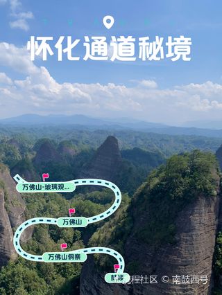 怀化的万佛山,位于通道县林口镇的太平岩村,距离县城双江镇约20公里,山中有绵延一百多公里的丹霞峰林地貌。此外,这里自然植被茂盛,空气非常的清新,山路不是很陡,也不险峻,对于城市中缺少日常运动的游客来说,爬起来是比较轻松的,差不多2小时左右就可以爬到山顶,特别适合周末休闲游山。