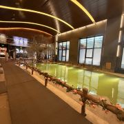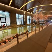 长白山聚龙火山温泉位于国家5A级景区长白山北景区老山门处,距离新山门1.5公里,长白山聚龙火山温泉采用管道直引方式引入长白山火山自溢温泉—聚龙泉。室内建筑面积3300多平方米,内设长白山特色草药温泉池、儿童嬉水池及多功能水疗区等10个温泉池;室外占地面积3600多平方米,园林景观式温泉池21个。其中的萌宠观赏区饲养着可爱的折耳兔、呆萌的法斗、憨憨的小香猪、美丽的蓝孔雀以及各种鸟类,叽叽喳喳,伴着原始森林,听天赖之音,享天然氧吧,天池汤泉每一个池子都增添了仿生造型,即体现了我们设计主题人与自然合谐相处,也提升了游客体验度,这里有优质的水源、贴心的服务,原生态环境,是您一年四季泡温泉圣地,来长白山感受12度粉雪温暖之美、22度清爽之美,那么一定不要错过82度温度氤氲之美。萌宠乐园动物:珍珠鸡、浣熊、矮脚马、金毛、阿拉斯加、法斗、白狐、安德鲁貂、白貂、骆驼、驴、山羊、香猪、野猪、松鼠、鹦鹉、土拨鼠、羊驼、鸽子、兔子、龙猫。娱乐设施: 滑梯 丛林攀爬网 丛林荡木、星空帐篷、丛林蹦床、蹦极床、丛林秋千、丛林跷跷板、丛林钢琴。