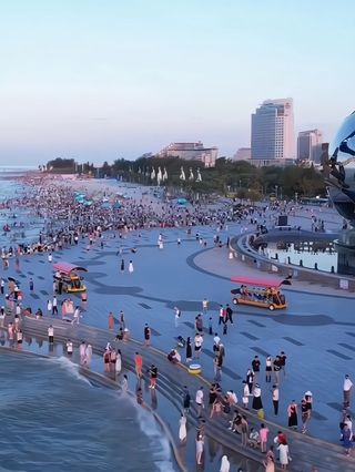 北海银滩景区位于广西壮族自治区北海市银海区,国家AAAA级旅游景区,是一个集自然风光、休闲娱乐和文化体验于一体的综合性旅游度假区。占地面积约38平方公里,东西绵延约24公里,从西边的到东边的大冠沙,广阔无垠,主要场馆景点北海银滩海洋公园、北海银滩旅游度假区·冰境纳凉馆、北海银滩旅游度假区·海境时尚馆、银滩公园、情人岛公园、海滩公园等。这里的沙滩由高品位的石英砂堆积而成,细腻洁白,在阳光下泛着银光,因此得名“银滩”。的海水纯净,水温适中,浪柔软无鲨鱼,是天然的滨海浴场和海上运动场所。这里属于南亚热带海洋性季风气候,四季宜人,无论是哪个季节来都能享受到宜人的海风。