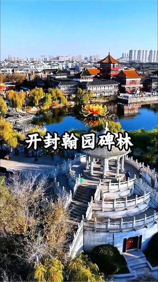 开封的中国翰园碑林,位于清明上河园以东,紧靠龙亭公园。中国翰园碑林分为园林和碑廊两大部分。中国翰园碑林有南、北两个门,南大门靠近园林区,北大门靠近碑廊区,园内还有翰园湖和南湖两个小人工湖。游客无论是南进北出,还是反方向游览都很便捷。
