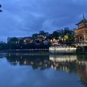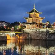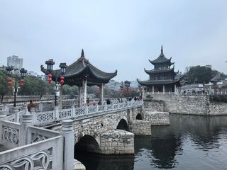 甲秀楼是贵阳的标志性建筑,它始建于明代,坐落于市区内南明河中的一块巨石上,是一座三层的木质阁楼。甲秀楼是来贵阳的游客必看的景点,这里的夜景也非常迷人,楼旁同样建于明代的翠微园也可一同游览。景区主要分为三部分,即浮玉桥、甲秀楼、翠微园。甲秀楼建于明代万历年间,其名字取“科甲挺秀”之意。这座木楼高22.9米,共有三层,顶层题“甲秀楼”三字,游客可登楼俯瞰南明河岸风光。数百年来众多文人墨客在甲秀楼留下了赞美诗词,其中以清人刘玉山所撰206字长联脍炙人口,此联概括了山城贵阳的地理形势及历史变迁。浮玉桥是一座纵跨南明河的石桥,由北向南将石木牌坊、涵碧亭、甲秀楼、翠微园串连一线。翠微园原名观音寺,现为一组将寺庙和园林结合为一体的古代建筑群,有亭台楼阁、假山、长廊,如今主要是当地人品尝聊天和交流字画的去处。