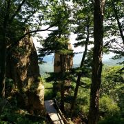 吊水壶风景区位于阿城区东南58公里,园内最高山峰海拔826米,园区面积约15平方公里,森林覆盖率达90%以上。景区内森林茂密,山峰险峻,有山泉、奇石、怪松,地形地貌十分独特,山峰拔地而起,山险且奇,悬崖峭壁,气势伟岸又异常俊秀。四季景色各不相同,春夏满山滴翠,秋日遍地金黄,冬季皑皑白雪,自然环境十分优美。主要景点有二龙泉花海、天柱峰、地柱峰、金枪峰、石柱峰、天成洞、老神树等。