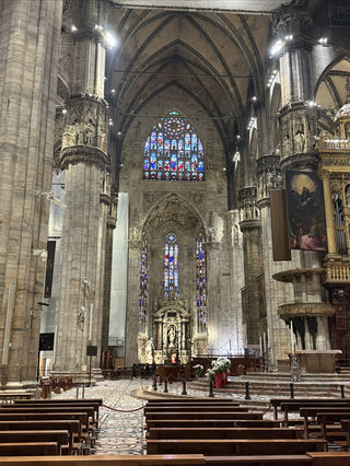 • 坐落于米兰市中心的大教堂,是米兰的标志性建筑• 欣赏迷人的大殿、高耸的石柱、绚丽的华创,研究各种风格的设计元素• 在平台层可以看到米兰大教堂顶部的精美塔尖和塔尖上的雕像,雕像形态各异,栩栩如生