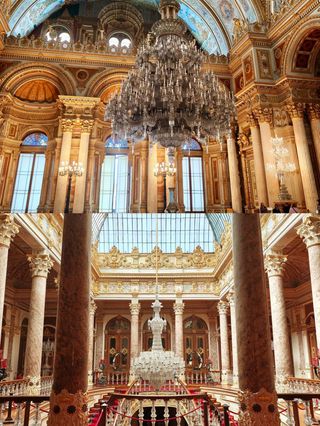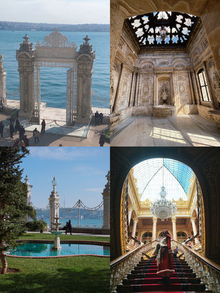 多尔玛巴赫切宫位于伊斯坦布尔的新城区,又被俗称为奥斯曼帝国新王宫。宫殿高大宽广,气势恢弘,隐约透露着曾经盛极一时的奥斯曼帝国的辉煌与富庶。“多尔玛巴赫切”的土耳其语意为填土兴建的庭院。这座宫殿于19世纪中叶,在原有的港口结构上建起的,它地处水滨,风景秀丽,依附在博斯普鲁斯海峡的欧洲沿岸上,是奥斯曼王朝后六位苏丹执政之所。宫殿成熟的建筑水平使得宫殿围墙全长达600米,内墙则铺满金箔,主体采用白色大理石及埃及雪花石打造。通过一扇装饰华丽的大门,就进入了花园环绕的王宫,花园里的花草树木都得到精心的照料,园内还矗立着一座巴洛克式的钟塔,根据推测这座钟塔当年还兼具警戒塔的作用。由于宫殿目前还为政府机关所用,因此门口依然有卫兵站岗,门禁森严,纹丝不动的卫兵也成为这里一道风景线。跟随导游参观宫殿宫殿主要由两大部分组成,分别为礼仪宫(Selamlık)、后宫和嫔妃院(Haremlik),共有285个房间、43间厅堂和6个土耳其浴室,堪称美仑美奂的杰作。游览时你必须在导游的带领下参观这两个地方,不能单独走动。游览一般分为两条线路,导游解说都为英语或土耳其语,基本上每条线路的游览时间在30-40分钟左右。如果你时间上很紧建议仅游览礼仪宫。礼仪宫与水晶阶梯从宫殿正门进入后,首先参观的就是礼仪宫,这里有接待各国使节的迎宾厅、候客室、与政府要员开会密谈的房间、浴室和儿童房等。另外,土耳其地毯、水晶烛台、象牙、黄金以及各国赠送的装饰品也值得仔细观赏。特别要一提的是这里的楼梯厅,支撑楼梯扶手的支柱是用水晶打造的,故称为“水晶阶梯”。阳光从玻璃帷幕顶棚照入室内时,就会呈现光彩夺目的景象。由顶棚垂悬而下的水晶灯重约2.5吨,为法国帕卡拉产的水晶。苏丹的加冕仪式都在这里举行,你可以看到用黄金镶成的苏丹的宝座。后宫与嫔妃院出了礼仪宫之后,占据宫殿北边大半部的就是后宫了,这里是除了苏丹和王子外,其他男人不得进入的地方。这个后宫与之前的帝王厅只有一道铁门之隔,这里根据嫔妃们的喜好装饰成不同样子的房间,洋溢着浓郁的西式风格。比如黄厅就是后宫女眷们开会的场所,这里是后宫大的一个房间。在寝宫的后面设有儿童房间,每样东西都小巧玲珑,造型相当可爱。另外,这里还有土耳其国父阿塔土耳克临终的房间,床上盖着丝绸做的土耳其国旗,墙上的时钟则永远停留在他逝世的时间9点零5分。其他看点参观完以上两条线路之后,有时间还可以去水晶宫和钟表馆看看。宫殿沿着海峡还有一条长160米的码头,据传昔日都是以船只为进出此宫殿的主要工具,当然目前已搁置不用。你可以站在这里远眺一下对岸秀美的风景并合影留念。此外,花园内钟塔的旁边还有一个露天的咖啡馆,走累的话可以坐下来喝杯咖啡,看看蓝天,吹吹海风。