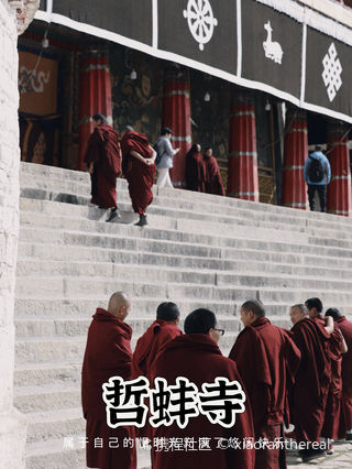 哲蚌寺坐落于拉萨西郊的山坳之中,寺院的建筑群规模宏大,白色的房屋和红色殿堂鳞次栉比的铺满山腰,远远望去像是巨大的米堆,对着山腰拍摄出的照片非常壮观。它在藏传佛教格鲁派中地位极高,内部建筑既大气又金碧辉煌,有很多美丽的珍宝,还有僧人的辩经仪式可以观看。