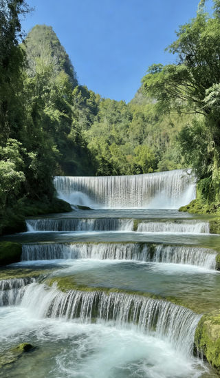 卧龙谷,位于荔波县小七孔景区内,是鸳鸯湖与卧龙潭之间的一段明流,因水质好且能吸收折射较多蓝光绿光,故多呈蓝绿色,清如明镜,群山树映,鸟鸣花香,山水相辉,景致一格。 卧龙谷漂流,从卧龙潭出发沿溪而下直至鸳鸯湖上湖,漂流全程约1.5小时。荡舟前行,溪流忽时而狭窄,时而宽阔,一道道绿荫幽深的水上长廊,一汪汪清澈见底的深塘,更有河中小岛如盆盆花木盆景屹立在水的中央。