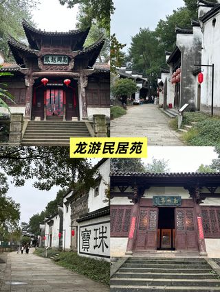 龙游民居苑坐落在风光秀丽的鸡鸣山,隔灵山江与龙游县城相望,是块依山傍水的宝地。山上的民居苑都是明清时期徽派建筑,当地政府将分散在龙游乡里民间值得保留的建筑经过一系列评定、筛选后,将它们聚集一处,按原样移植过来重建,形成了一片特定的民居游览区。游人可在此集中欣赏龙游棒的民居建筑。这里的建筑以龙游商帮为主题,不是商宅就是官邸,和皖南、婺源的古村落是不一样的味道。搬迁复建到此的民居中,包括了龚氏民居、余氏民居、滋树堂、聚星堂、高冈起凤厅、巫氏厅、劳氏民居、灵山花厅、翊秀亭、邵氏小厅和汪氏民居等34幢古建筑,其中还保留了一些文物。这些建筑是龙游古代劳动人民智慧和劳动的结晶,也是龙游商帮历史的见证。你可以在古商业街上走走逛逛,也可以走进民居内细细欣赏。由于这里没有人居住,游人也不多,拍建筑的照片很合适。龙游民居苑和龙游石窟相距不远,开车大约十几分钟,可购买联票一并游玩(100元)。