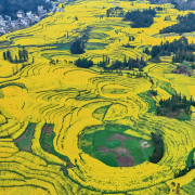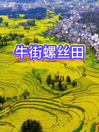位于县城西北十公里处的牛街“螺丝田”是一个有名油菜花拍摄点,这里的梯田是圈状的,远远看去真像是螺丝上的旋纹。 牛街“螺丝田”是由串珠岩溶漏斗地质地貌构成的自然景观,漏斗如此密集,形态如此奇特,目前尚不多见。景观深50米,呈东北——南西向,梯式水田和旱地,一层层齐整整。