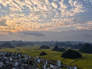罗平县位于曲靖市东部,不同于其他地区的崎岖,罗平的地势颇有几分水乡的风范。作为一个传统的农业县,这里世代种植的油菜花吸引了海内外广大旅行摄影爱好者。每年花期,罗平县城便深陷在一片油菜花的海洋里,80万亩油菜花竞相开放,颇为壮观。
