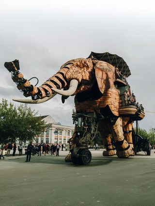 南特机械岛以科幻世界观创作的游乐园,游乐设施普通,但是机械动物值得一看,大概把它当小博物馆来看会比把它当做游乐园看好。特别是有标志性的代表物巨象,身高12公尺,身长21公尺,整体结构由钢铁所组成,光是身上用来维持机械运作的润滑油就有2000公升,外壳的厚皮则使用美国郁金香木,平时它住在中央大街上一栋船型的钢铁建筑之中,当它大迈步出去时,这庞然巨兽给人带来的震撼简直无可匹敌。