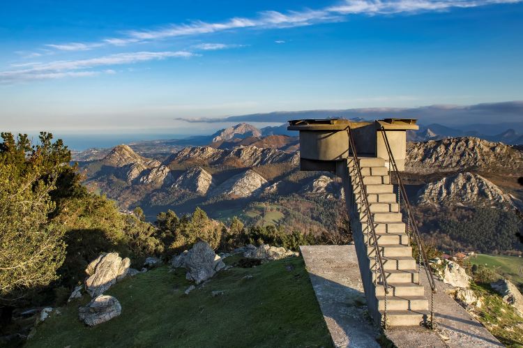 Mirador del Fitu是一处高地观景点,地势居高临下,视野开阔。观景台建于海拔约600米的山丘上,属于Sierra del Sueve(苏埃韦山脉)的一部分,这里连通海岸与内陆山区,是游客欣赏阿斯图里亚斯自然景观的重要地点。