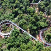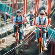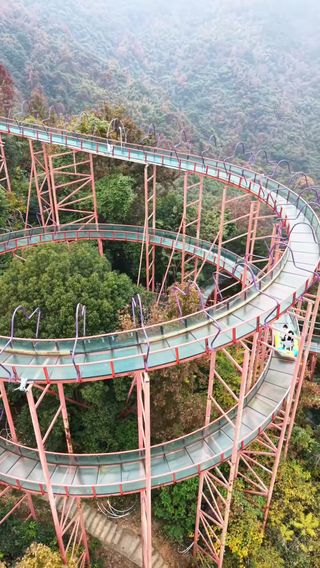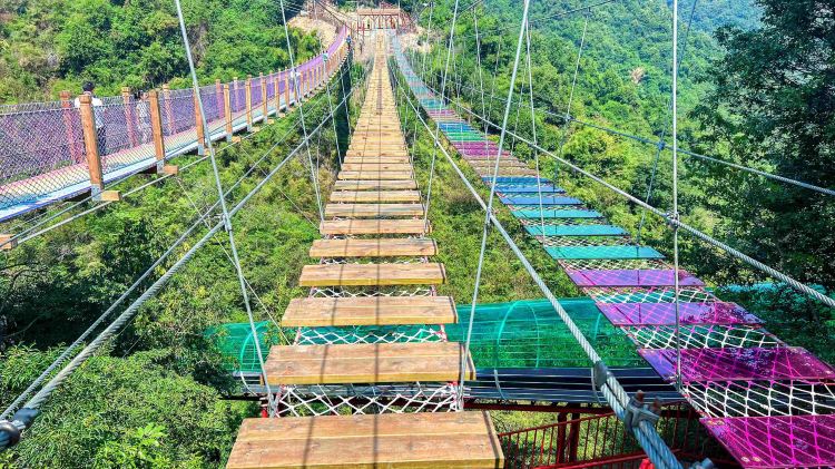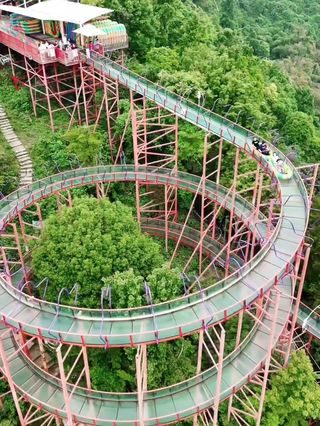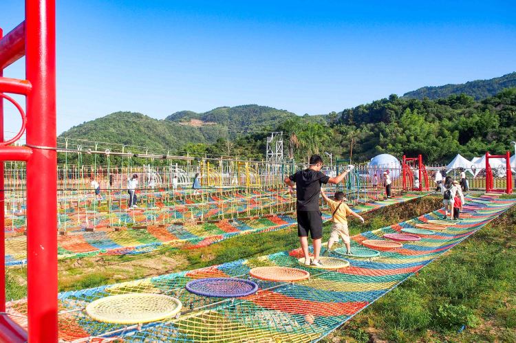 珑玥潭位于温州平阳县昆阳镇的后岙水库旁,绿水青山,打造了一个以"空中旅游、水上拓展、乡里闻居”为概念的景区,可以说是新时代乡村旅游的典范。山下的水上拓展、小火车、露营和七彩滑道,山上的步步惊心和玻璃漂流,可以满足成人、大小孩单独体验,更可以让大人带着小孩子共同体验。