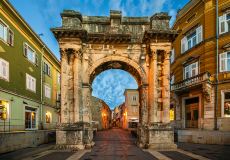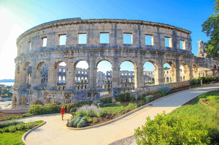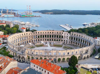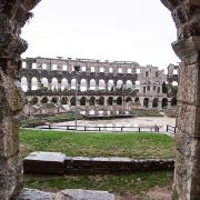 普拉竞技场始建于公元前27年,直到公元68年才建成,可容纳23000名观众。它位于克罗地亚西北部伊斯特拉半岛城市普拉。现在则是音乐会和电影节的会场。它是世界上至今整体结构保存较为完好的六大古罗马竞技场之一,也是为世人熟知一座。沿着主轴线还建有一条通道,曾经的角斗士、野兽就是从通道里被放出来并由此进行决斗。