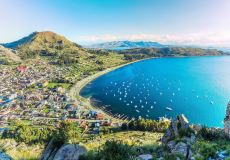的的喀喀湖位于玻利维亚和秘鲁两国交界的科亚奥高原上,被称为“高原明珠”,是世界上海拔较高的大型淡水湖。的的喀喀湖海拔高而不冻,处于内陆而不咸。的的喀喀名字的意义不详,但有“美洲狮岩”(Rock of the Puma)或“铅崖”(Crag of Lead)等不同译名。