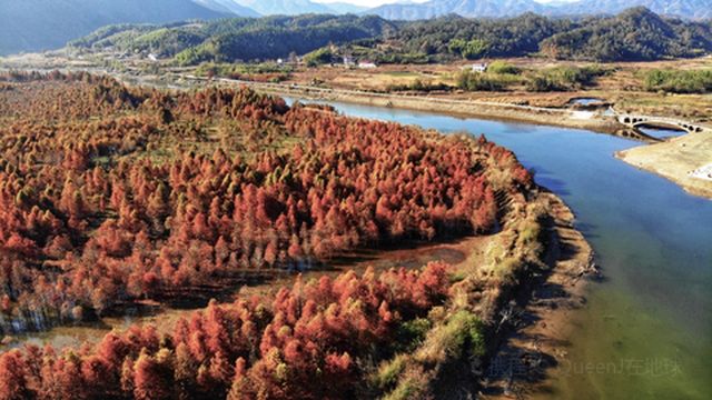 "秋冬红杉林宛如仙境"