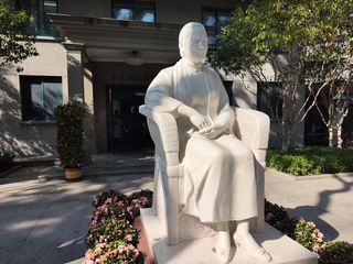 武康路390号建于1932年,原为意大利总领事官邸旧址。平缓的红色瓦顶、奶白色外墙、弧形环抱台阶、通往阳台的三扇落地大窗,现今这种典型的南欧地中海式花园别墅在上海已极为少见。如今这里成了上汽总部的办公地点,自然不接受游客参观。