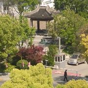 井亭绿地位于上海,里面有井和亭,还有浮雕墙和健身步道,园内景色秀丽、空气清新,是人们锻炼休闲的好地方。