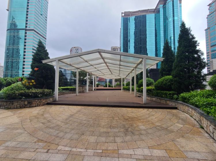该空中花园位于K11购物中心6楼,与位于6-9层的停车场相连,为顾客提供一个休闲观景空间,可在此看到淮海路与延中广场等美丽的城市风景。