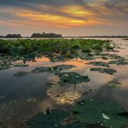 大莲湖湿地位于上海市青浦区,黄浦江的上游,园区内有一条很长的木栈道,悠闲地散着步时还能观赏到大莲湖的美丽景色。大莲湖湿地是以大莲湖为中心的园区,内有湿地、湖泊、河流等多样化的生态系统,里面种植了上千株的池杉树,枝繁叶茂,十分壮观。
