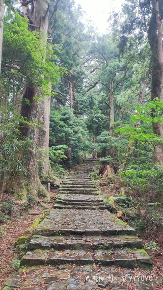 熊野古道是古时由京都往熊野三山(熊野本宫大社、速玉大社、那智大社)的参拜道,沿途仍留有昔日风情,参拜者至今络绎不绝。通往熊野本宫大社的大门坂位于郁郁葱葱的杉树丛中,大门坂是熊野古道中人气较高的地方,参天巨木夹道显得庄严,长满青苔的石阶为当年铺设之物,人们可以轻松品味漫步青苔石阶道这一原汁原味的景象。