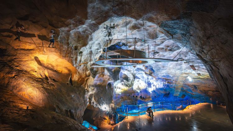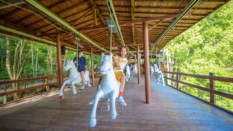 垂云通天河(即OMG心跳乐园),位于杭州桐庐境内,是一个隐秘在喀斯特地貌山谷中的综合型主题景区,惊险刺激却老少皆宜。景区以“上天入地”的游乐主题独创三大游乐组团:西游秘境、魔法森林和天空之城,打造成集美景、美食、美好体验为一体的综合型山地主题乐园,上天可玩转空中嘉年华,入地能探险奇幻地下河,孩子们在游玩中认识大自然的神奇,年轻人在嗨玩刺激中解放自我,年长者在山水间找回青春的气息。“惊叫”过的人生,无所畏惧!上天入地,玩的就是心跳!