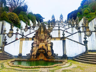 山上仁慈耶稣朝圣所位于葡萄牙北部布拉加市郊的埃斯皮诺山上,是一座历史悠久的罗马天主教朝圣地。其很有名的特色景点是宏伟的之字形巴洛克台阶,爬升高度达116米,沿途设有多座小礼拜堂、喷泉和雕塑,描绘耶稣受难的场景。这座朝圣所始建于14世纪,现存建筑主要建于18世纪至19世纪初,融合了巴洛克和新古典主义风格。其中,知名的“五感台阶”通过喷泉象征视觉、听觉、嗅觉、味觉和触觉,体现了宗教与艺术的结合。为方便游客登顶,1882年建成了伊比利亚半岛较早的缆车之一,至今仍在运行。2019年,山上仁慈耶稣朝圣所被列入联合国教科文组织世界遗产名录,成为布拉加的重要文化地标。