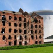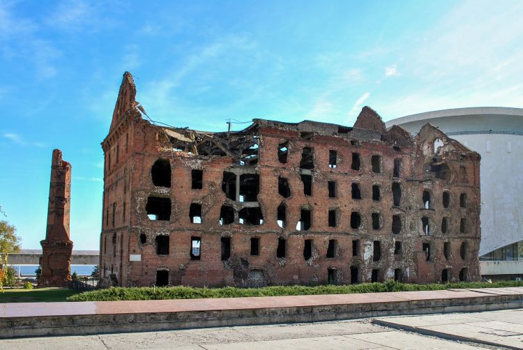 伏尔加格勒的全景博物馆内展示了二战中的战场废墟、战争的过程和一些武器装备。