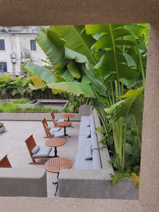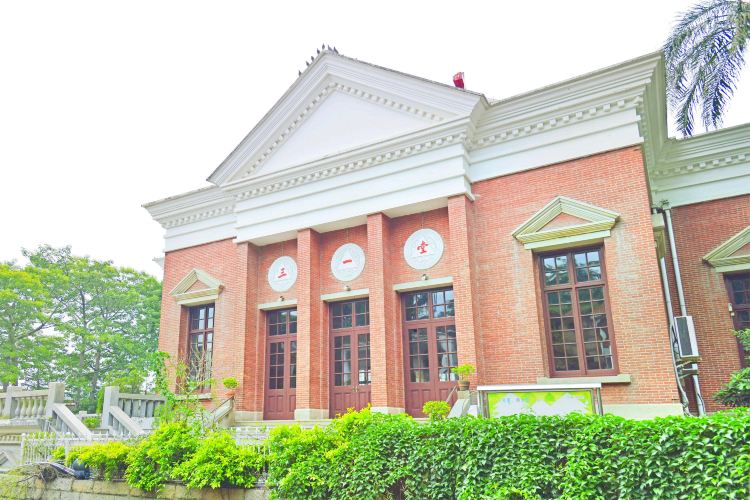 “三一堂”是一座教堂,它是一座粉红色的砖墙建筑。每一面都有山墙,山墙下边由方柱分成三道高达3米的大门,两边各有一个窗。不大的教堂外观显得很漂亮,很值得来看下。教堂呈现罕见的十字立体式造型,黄瓦屋顶居中矗立着八角钟楼,顶部高耸着十字架,内部采用无柱钢梁拱券的屋架。
