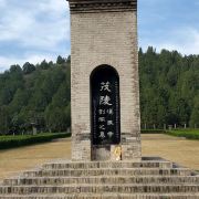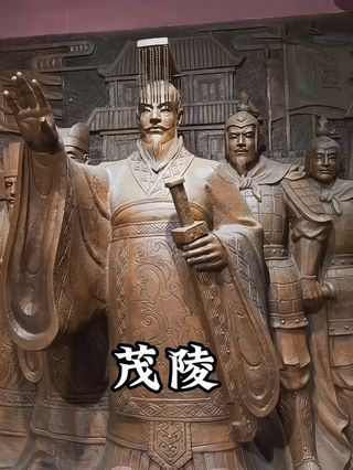茂陵,是西汉时期的汉武帝刘彻的陵墓,公元前139年-前87年历时53年建成,是西汉帝陵中规模很大、修建时间特别长、陪葬品很多的一座。陵体高大宏伟,形为方锥,有“东方金字塔”之称。至今东、西、北三面的土阙犹存,茂陵周边有李夫人、卫青、霍去病、霍光、金日磾等陪葬墓20多座,星罗棋布,蔚为壮观。它在历史上曾经多次被盗,如今在这里出土的文物多是来自陵园中各个陪葬墓。当年的陵园分为内、外两城,四周环以围墙(如今早已不存在了)。它的四周遍布嫔妃、宫女、功臣贵戚的陪葬墓。在这一带发现有众多的文物,如精美的青玉兽面纹铺首、错金银的云纹钢犀尊,以及朱雀纹、龙纹、几何纹等大型的空心砖和文字瓦当。1981年在茂陵东陪葬墓中发掘出鎏金铜马、鎏金鎏银竹节熏炉、提链铜暖炉等珍贵文物。如今,游客在茂陵博物馆中都能观赏到这些文物。在博物馆中还能观赏到国宝级的石刻,尤其是其中“茂陵博物馆”和“跃马”尤为珍贵。“茂陵博物馆”像,马昂首威然,四蹄稳稳踩在一个匈奴人身上;匈奴人怒目圆睁,手握弓弩,垂死挣扎。“跃马”,马的后身伏地,前身向上伸展,马颈下的石料并没有精细的凿去,整体的石块,更加承托出跃马灵动之美。