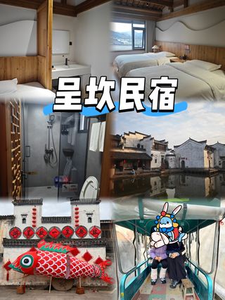 呈坎位于黄山市屯溪区北边31公里处,按照阴阳八卦布局,景致并不比宏村逊色,只是名气不响。这里不少高三层的明代建筑可谓古代“高楼”;更有稀有的宋元建筑;还有精美的宝纶阁,在所有徽派古村里都是数一数二的。有多条道路可以进入呈坎,主入口与售票处在西南角,呈坎客运站也在西南边。距售票处100米有个观景台,可以拍呈坎全景。观景台的右前方有个山头,山头上有座徽派小村,也是可以拍全景的地方。每到4月,村口的油菜花开,景色超美。呈坎的主入口处有一片湖(水口),像宏村的南湖,湖上也有桥,白墙黑瓦倒映在湖里,是超美拍照地,夏日可赏湖中荷花。唐末的罗氏兄弟迁居呈坎,罗氏及后人将村子建成了符合阴阳八卦的八卦村,街巷四通八达,进村后如入八卦迷阵。建议在景区门口请个导游,在迷阵中不至于错过重要景点,像八卦之类的名堂,也要有人讲解才能懂。由于导游数量有限,村中当地人会自荐当“野导”,一些重要建筑很有可能野导进不去,只能在门口讲解几句,有些当地人只会讲土话,记得找会讲普通话的并谈好价钱,以免事后发生不快。游览线路一般遵循从西到东的顺序。若是追寻“年代久远”,宋代的长春社年纪大,在村子的东南角,是祭祀土地神的地方。元代的环秀桥在村子的东北边,桥头有座亭子,桥边的环秀轩里收藏了很多徽州老木雕和刺绣。元代的罗会泰宅同样历史悠久。若是想看“建筑精美”,明代的宝纶阁(贞静罗东舒先生祠)是必体验的,在村子东北边。这是一座三进祠堂,第一进为仪门;第二进为大厅,堂上匾额为董其昌所书,堂里的几根金丝楠木柱子价值连城;第三进便是宝纶阁,进入后一定要抬头看屋顶,房梁的两端雕着花,多数梁上有彩绘图案,绝妙的是有些连颜色还依稀可辨,美不胜收!明代的燕翼堂、罗闰坤宅都值得一看。燕翼堂位于天灯巷1号,高三层,镶满铁钉的大门、梁柱上的构件令人映像深刻。罗闰坤宅门牌号“前街66”,高两层,窗上的雕花精致,楼上的美人靠和窗栏也很漂亮。在村子外的东南角,很大的明代单孔石桥隆兴桥也可以看看。呈坎的商业化程度不高,食宿也就没那么发达,可以从小贩那买点水豆腐、毛豆腐尝尝,据说是黄山市较好的,村内也有住宿,不过不多,要吃要住推荐到外边的呈坎镇上。汇聚了各式徽派建筑的潜口民宅距呈坎约8公里,徽派村落唐模距潜口民宅约4公里,可安排在一条线上游览。