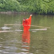 古戏台位于姚江边,宝珠观东侧。 它属单檐歇山木石砖瓦结构,整座戏台平面呈“凸”字形,是一座八柱式,带后台、厢台、边栏的亭阁式戏台。