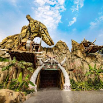 自贡方特恐龙王国是由华强方特集团精心打造的一座以恐龙文化和古蜀文明为主题,集主题体验、科普教育、休闲度假、餐饮购物等为一体的大型文化高科技旅游景区。景区将自贡恐龙文化与四川古蜀文化深入融合,依托华强方特强大的创意能力和科研实力,综合运用AR、VR、球幕、巨幕等前沿科技,打造了一系列演绎恐龙故事、探险恐龙世界、科普恐龙知识、重现古蜀文明的沉浸式互动主题项目,并通过营造众多史前的原始丛林、湿地沼泽、火山峡谷等场景,为广大游客创造了一个兼具趣味刺激与奇幻想象的恐龙探险王国。