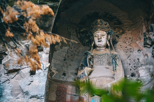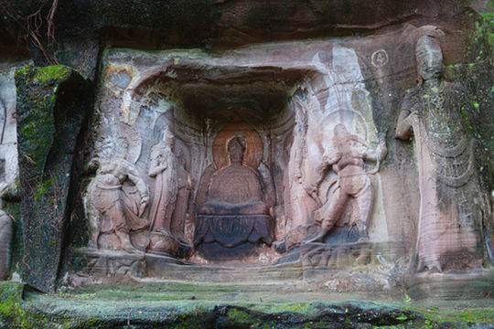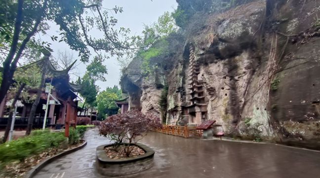 "山顶岩寨崖壁上雕刻有佛像3千余尊"