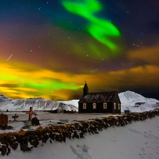 黑教堂以其独特的黑色外观和简约的建筑风格而闻名,成为许多摄影爱好者的热门取景地。教堂周围是辽阔的苔原和远处的山脉,景色壮丽,尤其在清晨和黄昏时分,光影效果较好。黑教堂的历史可以追溯到19世纪,虽然经过多次重建,但仍保留了原始的设计风格。教堂内部简洁而庄重,常用于婚礼和其他私人活动。游客可以在教堂周围漫步,欣赏周边的自然风光,并在附近的布迪尔海滩体验冰岛独特的海岸线。前往黑教堂的交通较为便利,建议自驾游览,以便灵活安排时间。附近有少量的住宿选择,游客可以在此停留一晚,享受宁静的乡村氛围。参观时请尊重当地的文化和宗教习俗,保持安静,不打扰正在进行的活动。