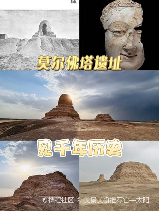 莫尔佛塔位于喀什市东北约30公里古玛塔格山中段的一座沙丘上。始建于唐代,距今已有1000多年历史。莫尔,维吾尔语意为烟道、烟囱。该塔由一座卵圆形土塔和一座覆斗形高台构成,当年是专门用来供佛的。早些时期,当地居民一直误认为此塔为古代烽火台,故名莫尔。