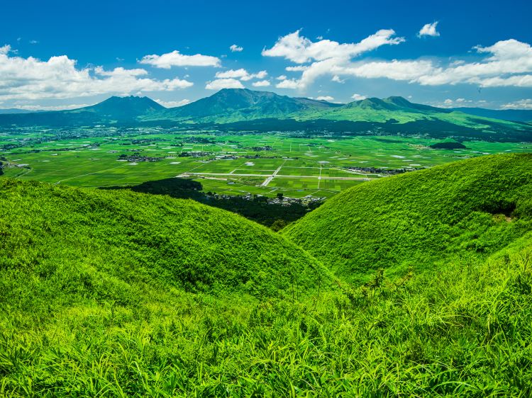 大观峰是内牧温泉东北方的北外环山的较高峰,在这里可以看到阿苏五岳和久住连绵起伏的山峰,在天气条件合适的情况下还有机会看到壮观的云海。在标高936米的外环山的高峰设置了展望台,远眺能将阿苏的街景尽收眼底。