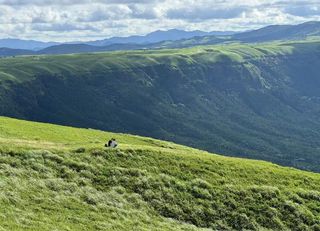 即使是多云的冬天,还是美极了,刚到阿苏时还觉得阿苏有点小家子气,一到这,才发现了不一样的阿苏,好开阔。如果能有时间多等半小时,云雾都散去,阿苏五岳就在眼前,田园村庄在群山的包围庇护下。在草丛里走走跑跑,好舒服。从展望台一直往前发现有条一直往下的小径,估计是可以从这徒步下山,各个方向走走,发现有好几条类似的下山路。下次一定要来感受一下,从不同的高度和角度欣赏风景。夏天草丛都绿的时候应该会更美。