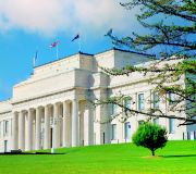 天空塔高达328米,是奥克兰的地标。它与其他的建筑连成一体,组成巨大的天空城。天空塔有三个透明的电梯,以时速18公里的速度上升,带你到顶部的观望台和旋转餐厅仅需40秒钟,在那里你就能够像天使一样俯瞰整座奥克兰城。建议选择傍晚过去,先看一场美丽的落日,夜幕降临,还可以俯瞰奥克兰的夜景。此外,你还可以体验天空漫步。天空塔漫步是在天空塔192米高的外环平台上,由教练带领并指导进行高空漫步的活动。