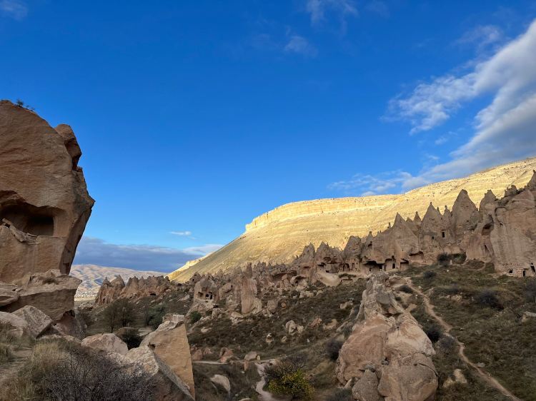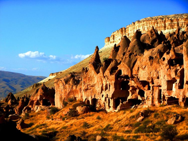 与格雷梅露天博物馆相比,济尔维露天博物馆要冷清不少,也没有太多教堂壁画可看,但这里有着同样高耸的石柱和石建筑,是卡帕多奇亚人旧时生活的缩影。济尔维在公元9-13世纪是僧侣隐修的地方,直到1952年,还有人在这里居住。