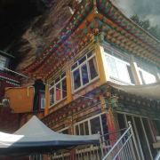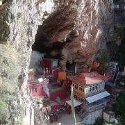 毗卢圣窟又叫麦若扎拉神洞,位于四川阿坝州马尔康查米村附近的一座海拔约4000米的山上,此山也被称为毗卢神山。传说这里曾是唐时藏族文学家、翻译家麦若扎拉修行的地方。清乾隆年间,六世仓央嘉措亦在此修行。寺庙建筑在山崖洞穴之中,除了大殿,还留有25处圣迹,如毗卢遮那的脚印、手印、留下的拐杖等。