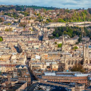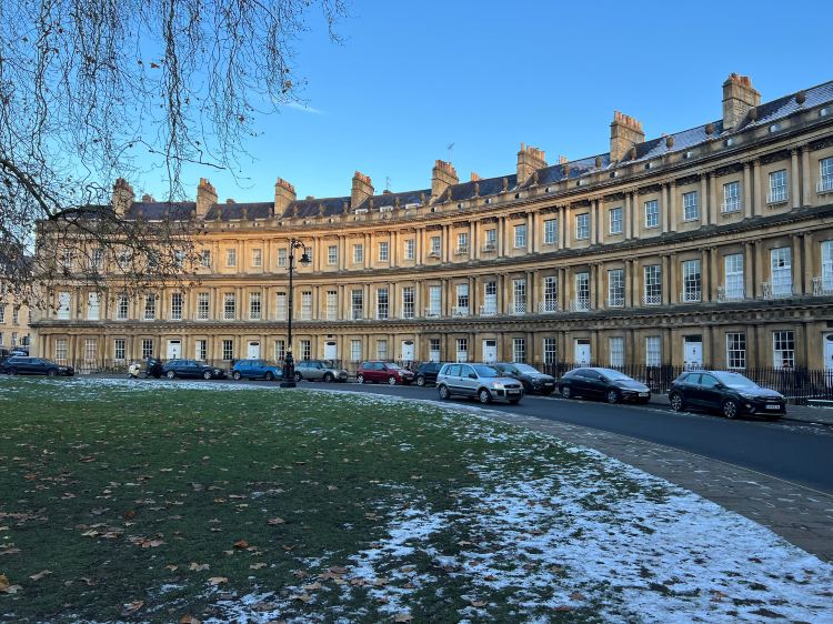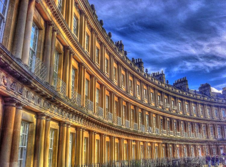这座象征着太阳的圆形广场造型气派端庄,环状建筑间连通着三个岔路口,其中的布鲁克大街(Brock Street)则笔直延伸到西侧的新月楼。其实广场与新月楼的联系是老约翰·伍德在18世纪时为巴斯做城市规划时的精心布局,取“日月同辉”之义。尽管新月楼后来是由小约翰·伍德操刀完成,但是老约翰·伍德这种以圆形或新月形广场配置街屋的理念却在后世蔚然成风,对伦敦和爱丁堡等地的城市规划都产生了深远的影响。