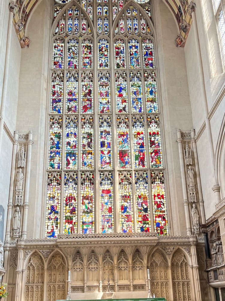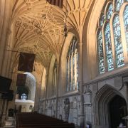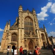 “琴键上,透着光,彩绘的玻璃窗,装饰着哥特式教堂……”虽然这是《布拉格广场》中的歌词,用来形容巴斯修道院却再适合不过。巴斯修道院的全名叫作圣彼得与圣保罗修道院教堂,是巴斯市精致的市中心里规模较为宏大的建筑,也是让游人永远不会迷路的地理标志。教堂的平面图呈十字形,从雅芳河畔一直蔓延到市区热闹的地段,它创建于7世纪,又于12和16世纪重建,是英格兰西部大型的垂直哥特式建筑。