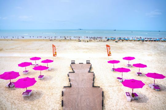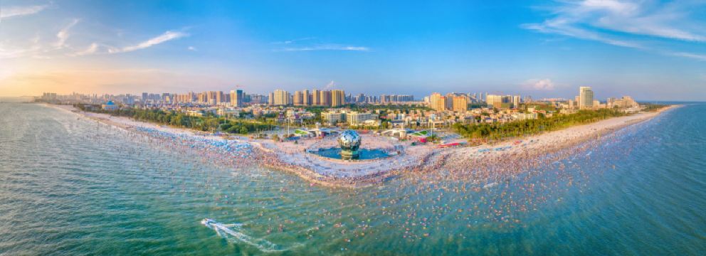 北海银滩景区位于广西壮族自治区北海市银海区,国家AAAA级旅游景区,是一个集自然风光、休闲娱乐和文化体验于一体的综合性旅游度假区。占地面积约38平方公里,东西绵延约24公里,从西边的到东边的大冠沙,广阔无垠,主要场馆景点北海银滩海洋公园、北海银滩旅游度假区·冰境纳凉馆、北海银滩旅游度假区·海境时尚馆、银滩公园、情人岛公园、海滩公园等。这里的沙滩由高品位的石英砂堆积而成,细腻洁白,在阳光下泛着银光,因此得名“银滩”。的海水纯净,水温适中,浪柔软无鲨鱼,是天然的滨海浴场和海上运动场所。这里属于南亚热带海洋性季风气候,四季宜人,无论是哪个季节来都能享受到宜人的海风。