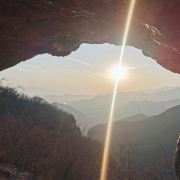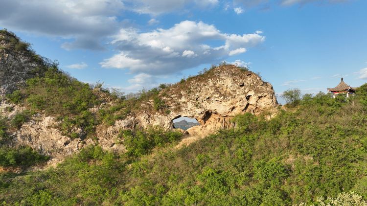 北京天门山国家森林公园地处北京市门头沟区潭柘寺镇南辛房村,与“千年古刹”潭柘寺相邻,距市中心40公里。因山顶悬崖自然形成不规则的透天窟窿,百姓称之为窟窿山,又因其形如“门”,石窟内壁有“天门山”字样石刻而得名天门山,公园