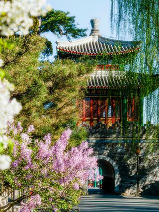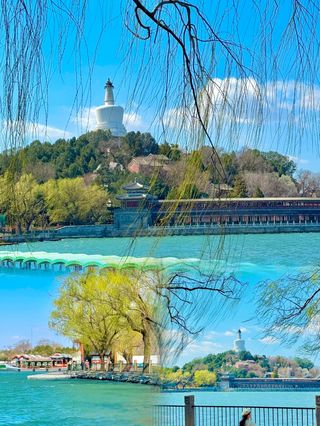 “让我们荡起双桨,小船儿推开波浪…”,耳熟能详的歌中描述的正是这里。北海位于故宫博物院西北侧,与“中海”“南海”合称三海。公园曾是皇家园林,园内亭台错落掩映,湖畔林木郁郁葱葱,风光极美。